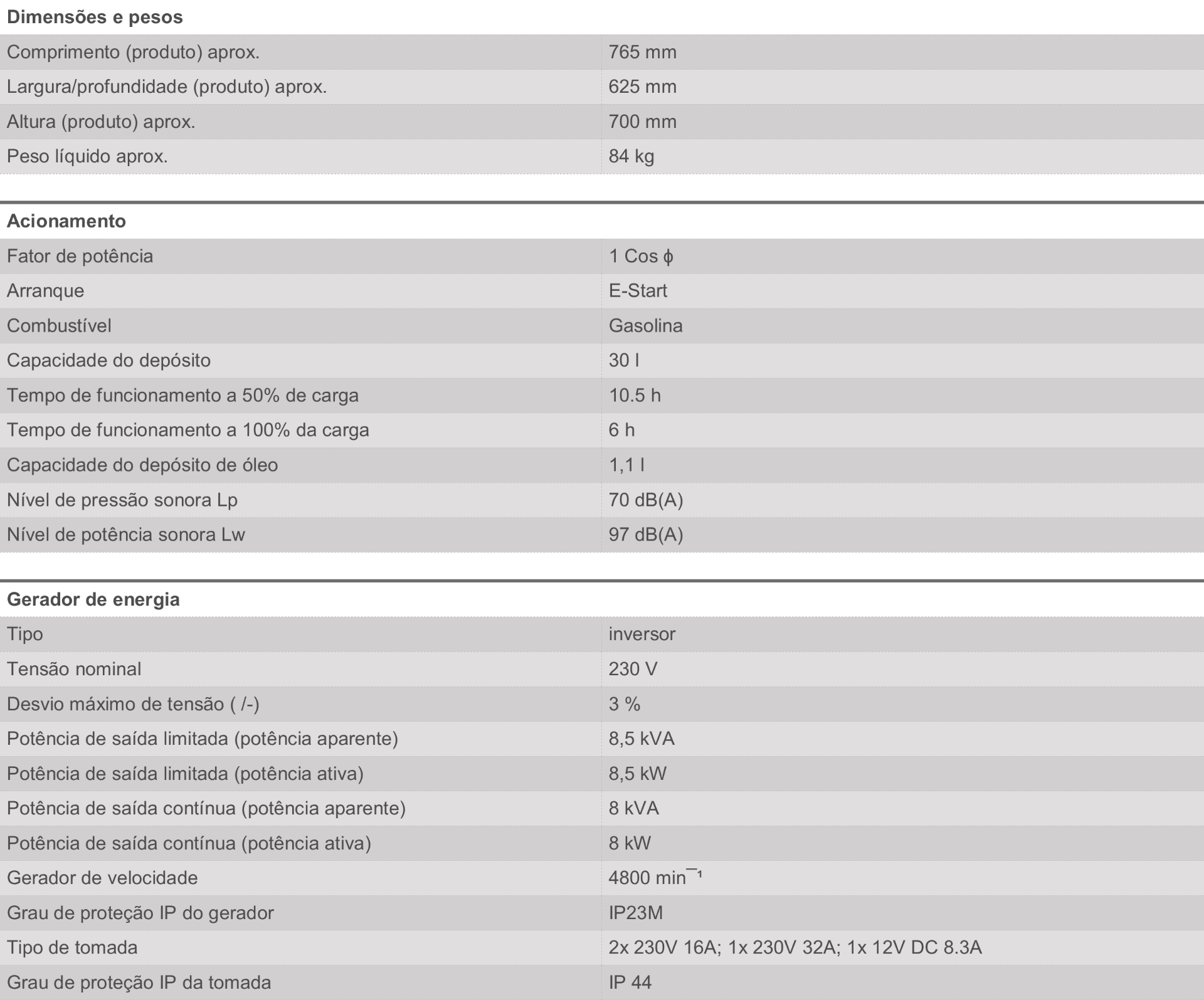Gerador Inverter Gasolina PG-I 85 SE-S HC Art. no.: 6707186