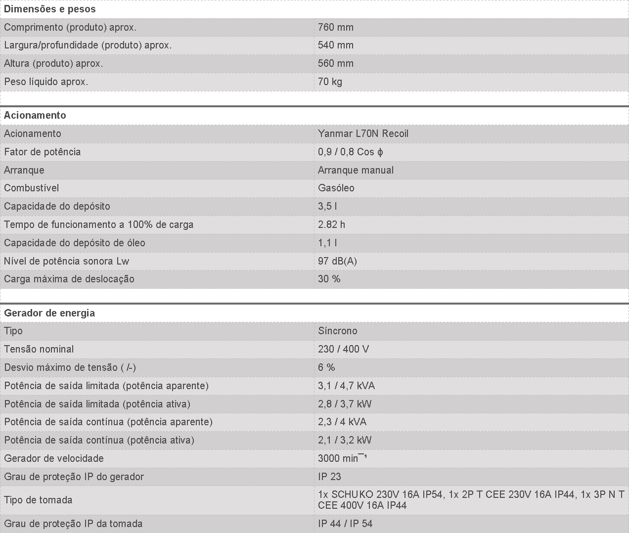 Gerador síncrono Gasóleo PG-D 450 TR Art. no.: 6705043