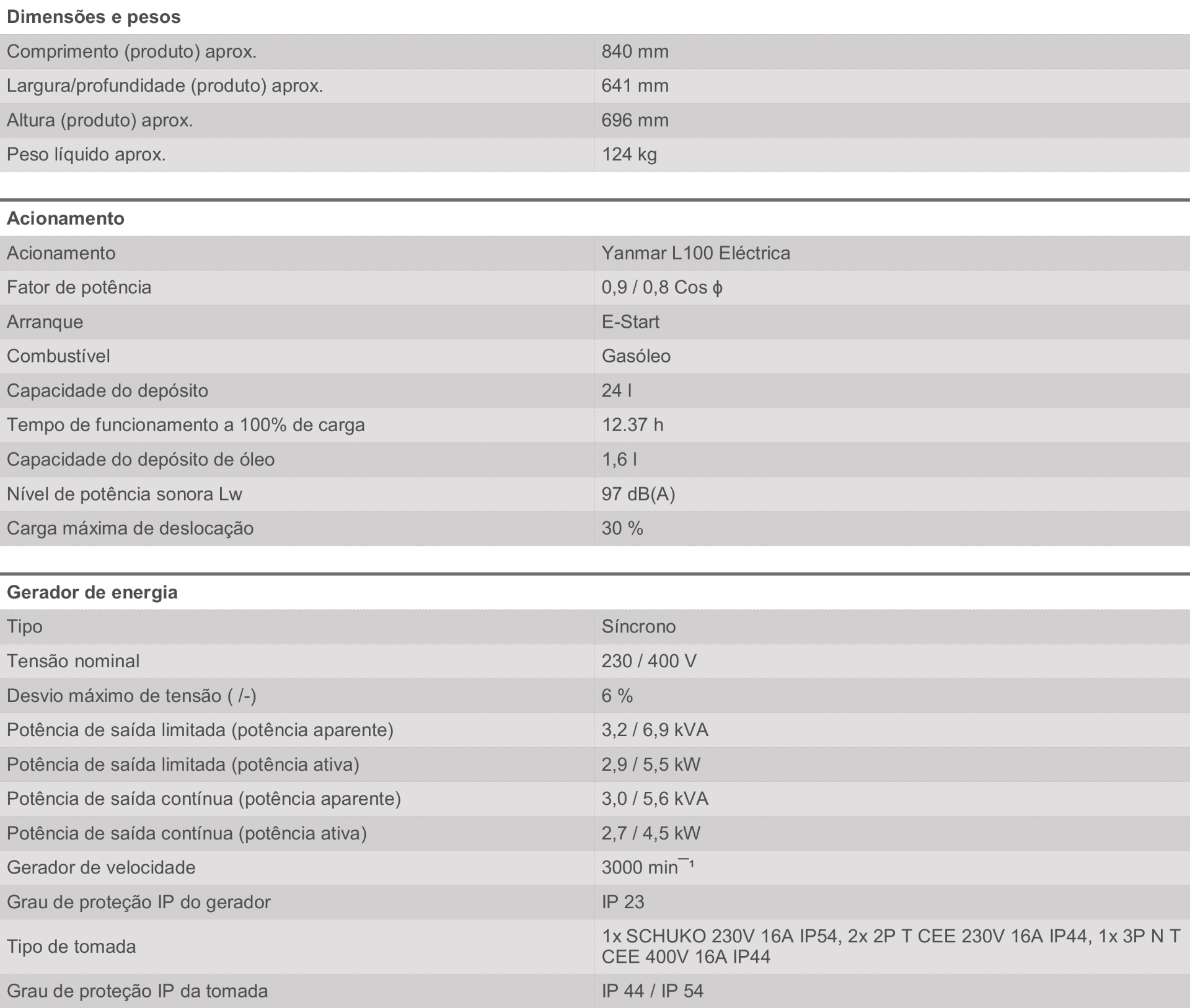 Gerador síncrono Gasóleo PG-D 600 TE Art. no.: 6705073