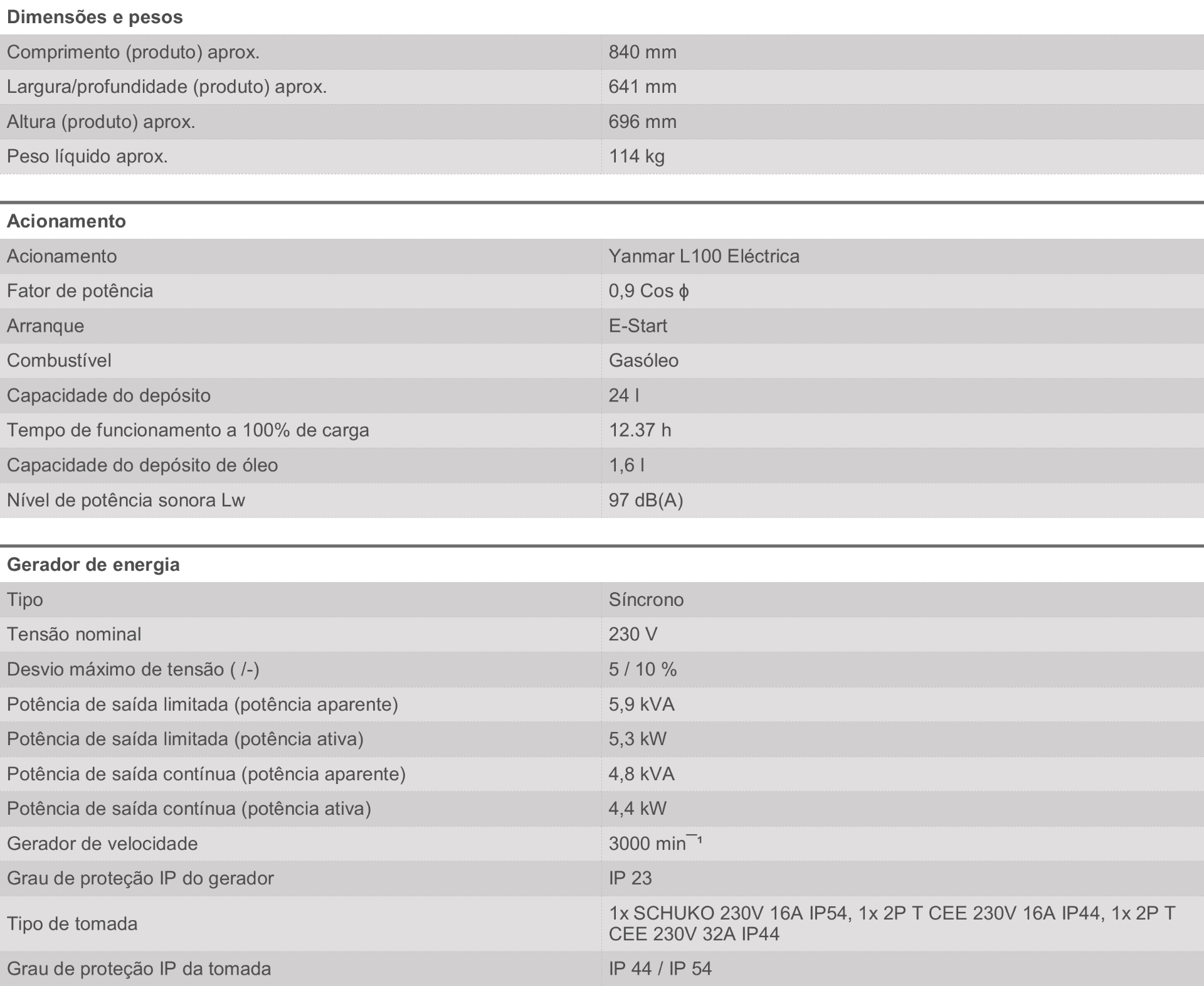 • Não cumpre a norma de ruído 2000/14/CE, não está aprovado para funcionamento no exterior sem medidas de proteção contra o ruído