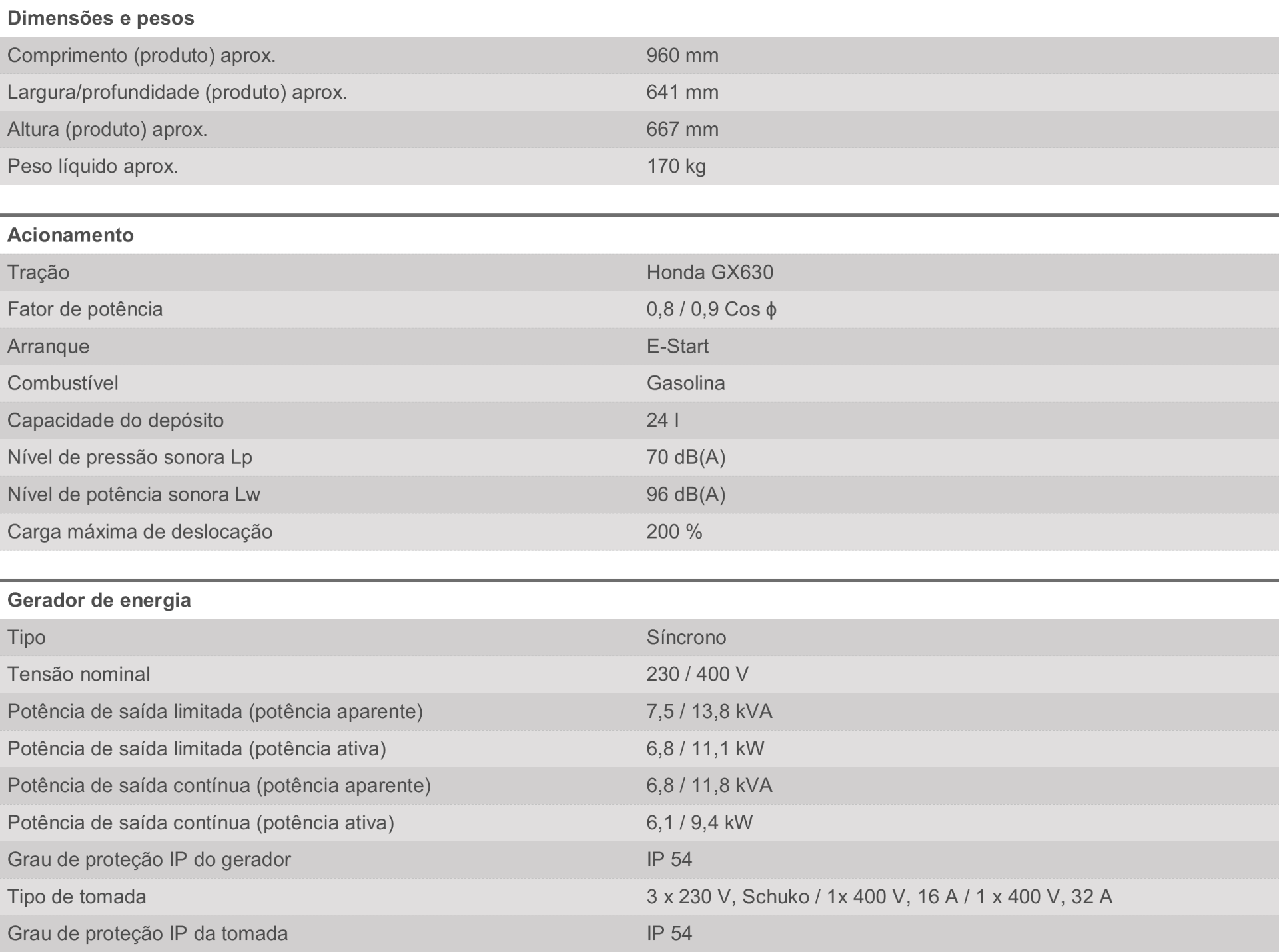 • Potência de curta duração até 4 vezes a potência nominal