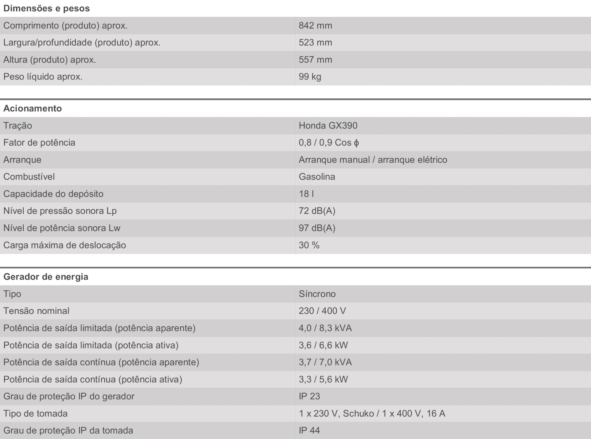 Gerador síncrono Gasolina PG 800 TEA HC Art. no.: 6702085