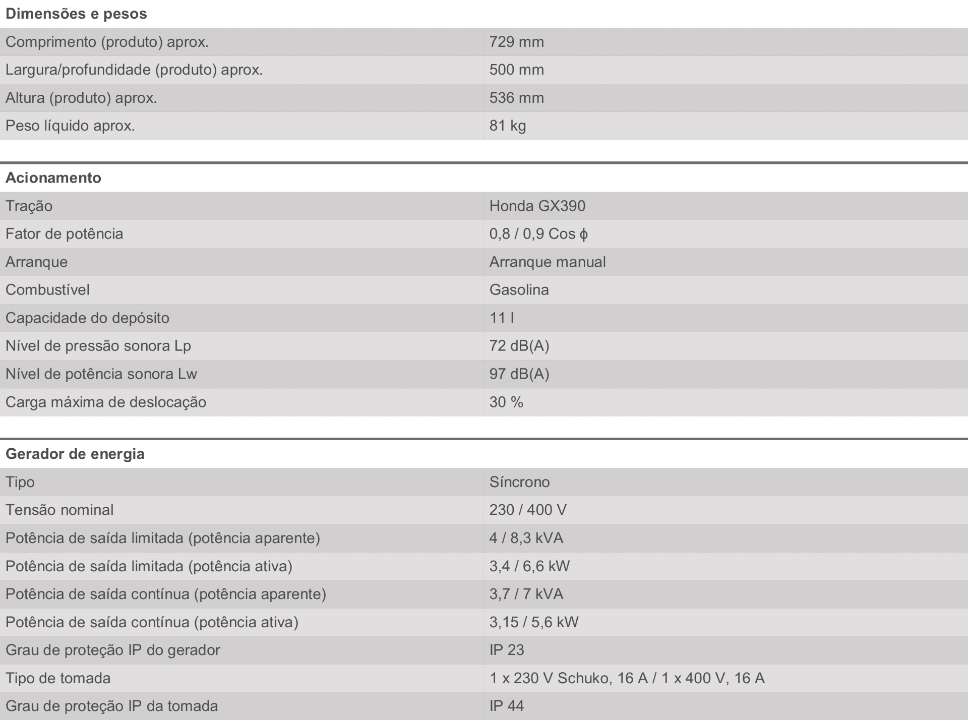 Gerador síncrono Gasolina PG 800 TRA Art. no.: 6701083