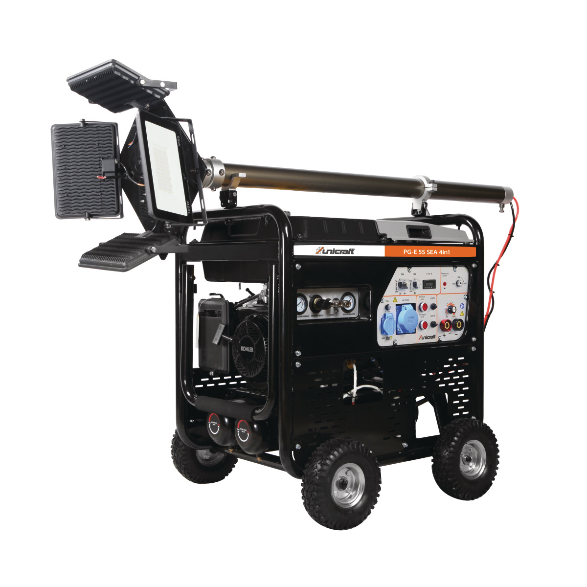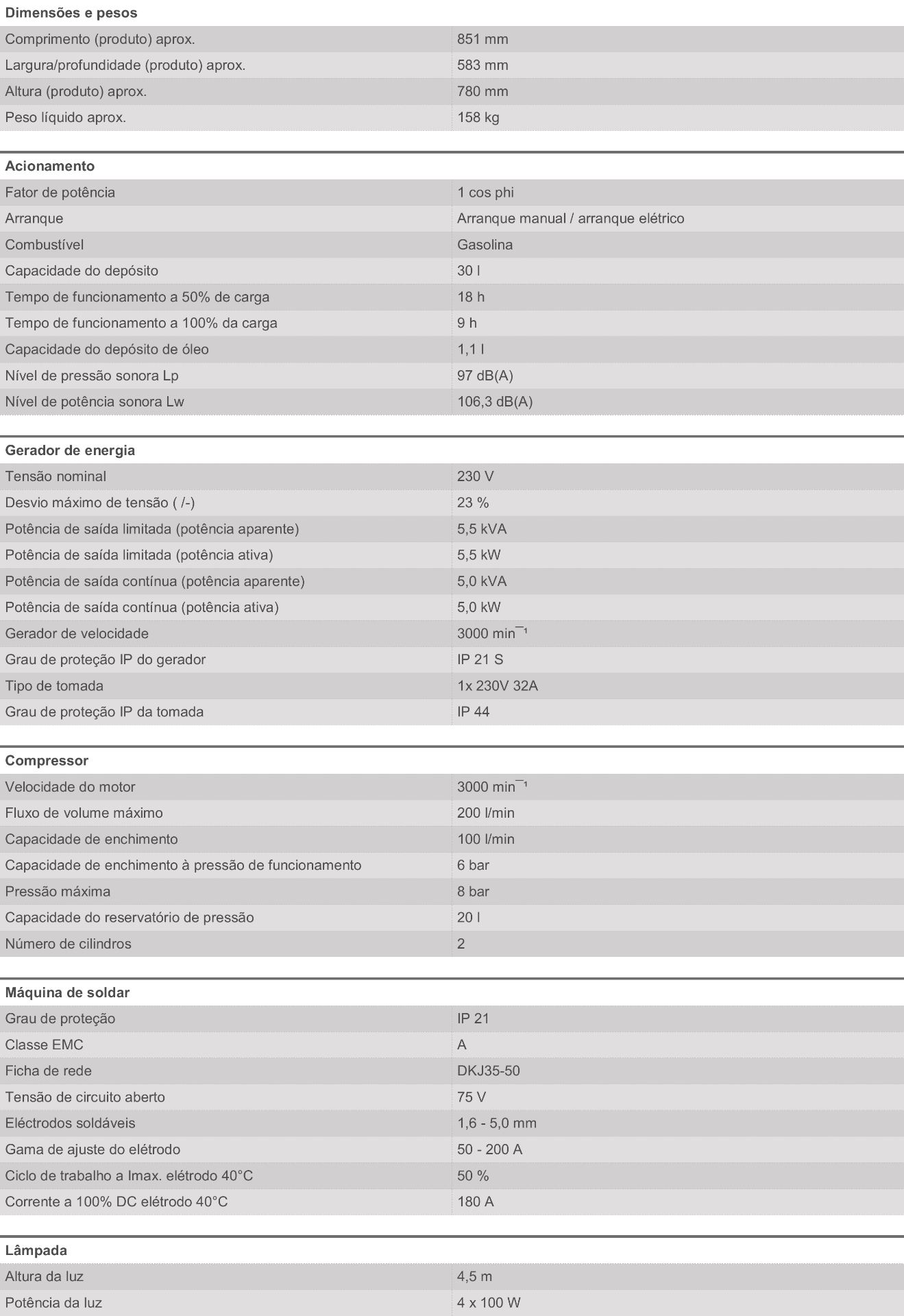 • Gerador de energia multifuncional para estaleiros de construção e utilização no exterior graças à função de soldadura, compressor e luz
