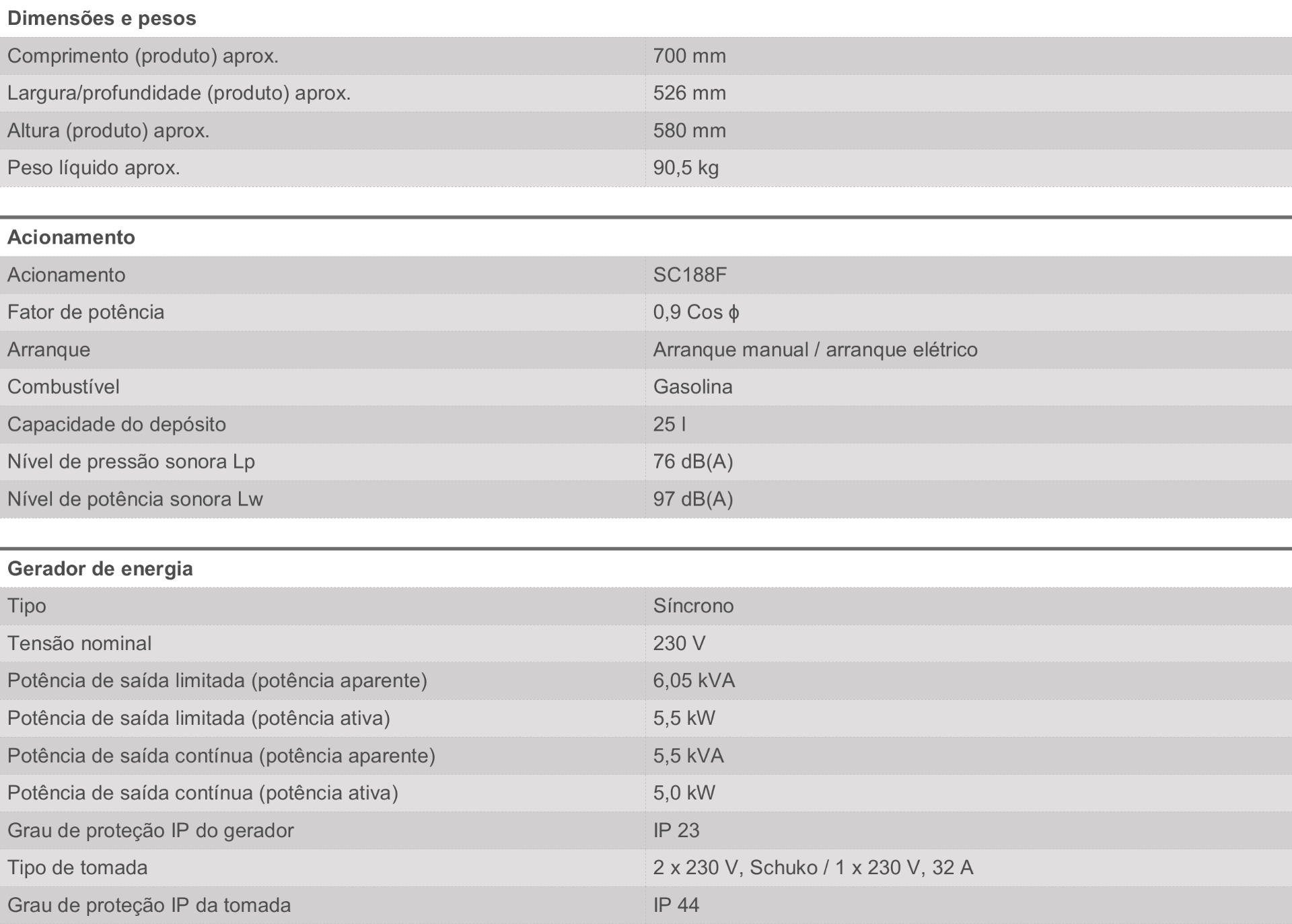 Gerador síncrono Gasolina PG-E 60 SEA Art. no.: 6706060